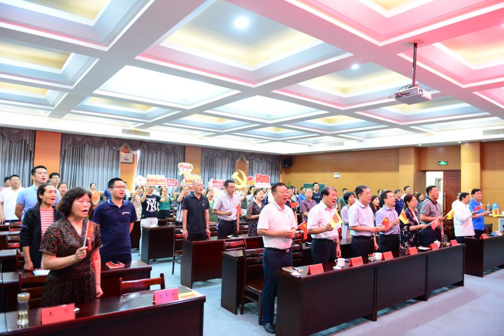 慶祝大會結束后,大家在校黨委書記籍獻平的帶領下,共同唱響《沒有共產黨就沒有新中國》。