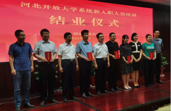 2021年6月29日下午在北京大學中關新園二樓會議室召開了河北開放大學系統新入職人員培訓班結業儀式。河北開放大學黨委副書記、校長段潤保出席儀式并做了總結講話,國家開放大學社會教育部副主任呂倩等老師出席了儀式。儀式由省校黨委常委、副校長張瑞海主持。