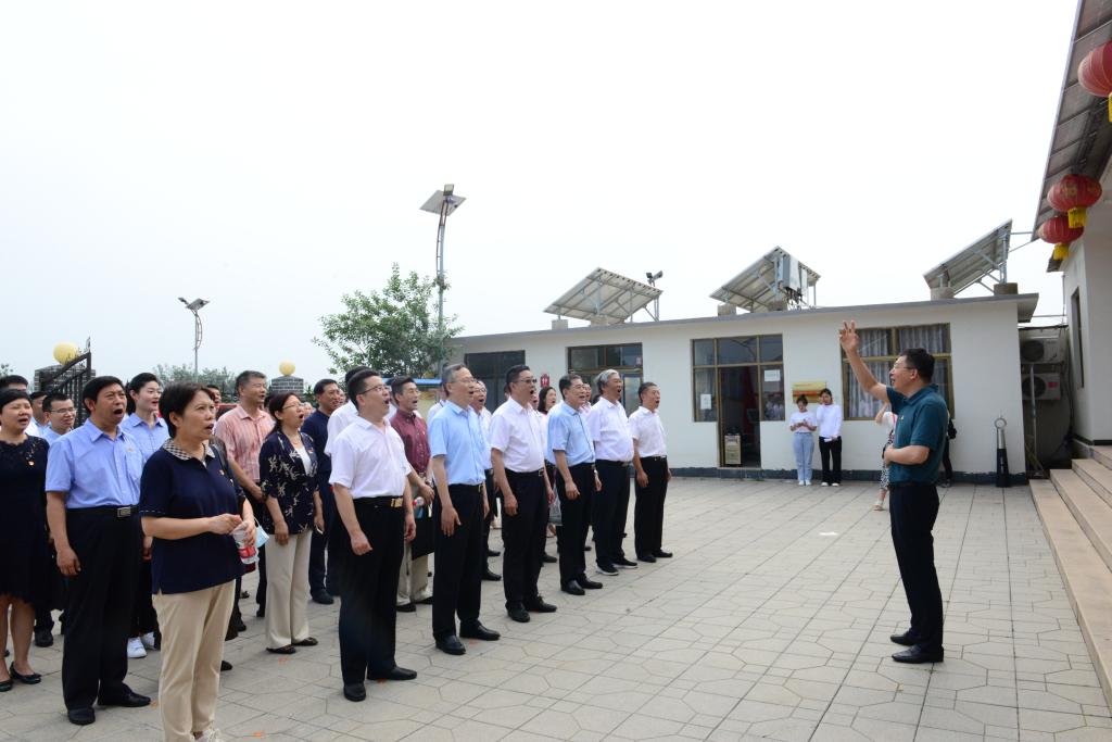 在北莊村,荊德剛領學了習近平總書記給北莊村全體黨員的回信并帶領全體人員合唱歌曲《團結就是力量》,大家深刻感受到“團結就是力量,團結才能前進”,只有凝聚系統合力,開放大學的事業才能走向輝煌。