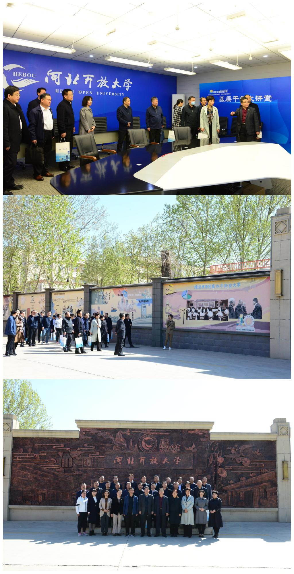 會(huì)上還討論了關(guān)于成立河北開放大學(xué)體系校務(wù)委員會(huì)相關(guān)事宜和省市縣一體化的辦學(xué)職責(zé)分工。對(duì)河北開放大學(xué)視覺識(shí)別系統(tǒng)進(jìn)行了宣傳培訓(xùn)。參觀了河北開放大學(xué)雙向視頻會(huì)議室、終身學(xué)習(xí)體驗(yàn)廳、網(wǎng)課直播間、智慧教室、校史文化墻等。