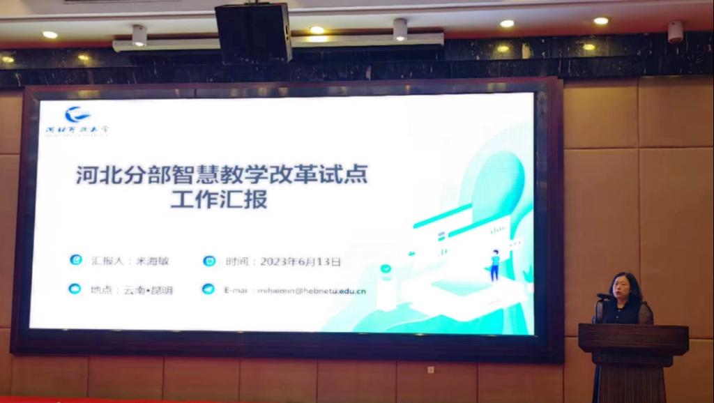 在研討會上,我校教學支持部英語系主任米海敏副教授就智慧教學改革試點工作做了經驗分享。主要介紹了我校智慧教學改革的基本情況;展示了在教改過程中基于目標和問題為導向開展教學設計與實施的基本做法;重點分享了通過試點教學團隊建設打造河北體系內英語教師共同體和發揮團隊示范引領作用等方面的經驗。我校智慧教學改革試點工作取得的進展和經驗得到了與會專家和教師的高度評價。