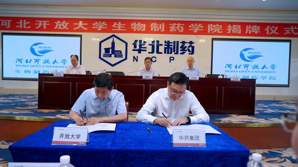 6月19日下午,河北開(kāi)放大學(xué)生物制藥學(xué)院揭牌成立。這是我校設(shè)立的首個(gè)行業(yè)學(xué)院,是與華北制藥集團(tuán)有限責(zé)任公司(以下簡(jiǎn)稱“華藥集團(tuán)”)共同合作開(kāi)展人才培養(yǎng)和科技服務(wù)的應(yīng)用型專業(yè)學(xué)院。我校黨委書記籍獻(xiàn)平,華藥集團(tuán)黨委書記、董事長(zhǎng)肖明建共同為學(xué)院揭牌。