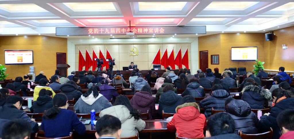 為學習好、貫徹好黨的十九屆四中全會精神,切實把學習貫徹黨的十九屆四中全會精神與做好主題教育各項工作緊密結合起來,11月29日上午,我校召開了黨的十九屆四中全會精神宣講會。校黨委副書記岳俊輝主持會議,黨委書記籍獻平做宣講報告。