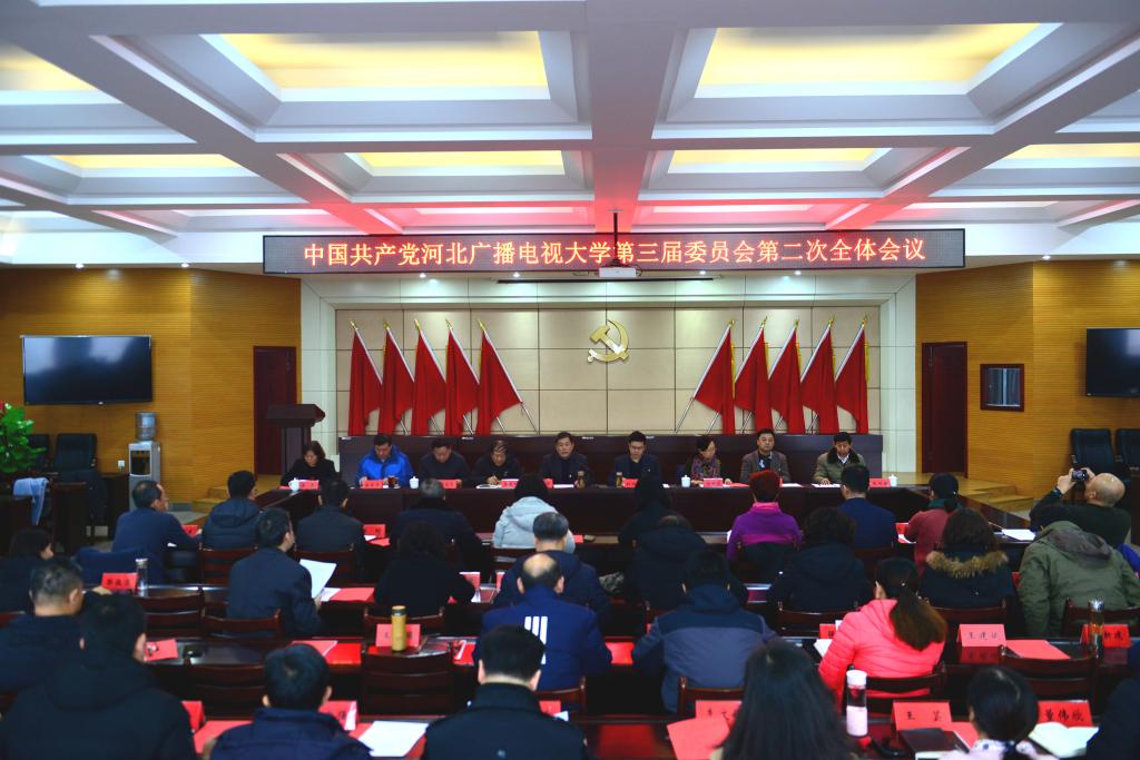 1月9日上午,中國共產黨河北廣播電視大學第三屆委員會第二次全體會議在莊嚴的國歌聲中拉開序幕。學校第三屆黨委委員出席會議,處級干部、教職工代表列席會議,校黨委書記籍獻平同志主持會議并代表學校黨委常委會作工作報告。