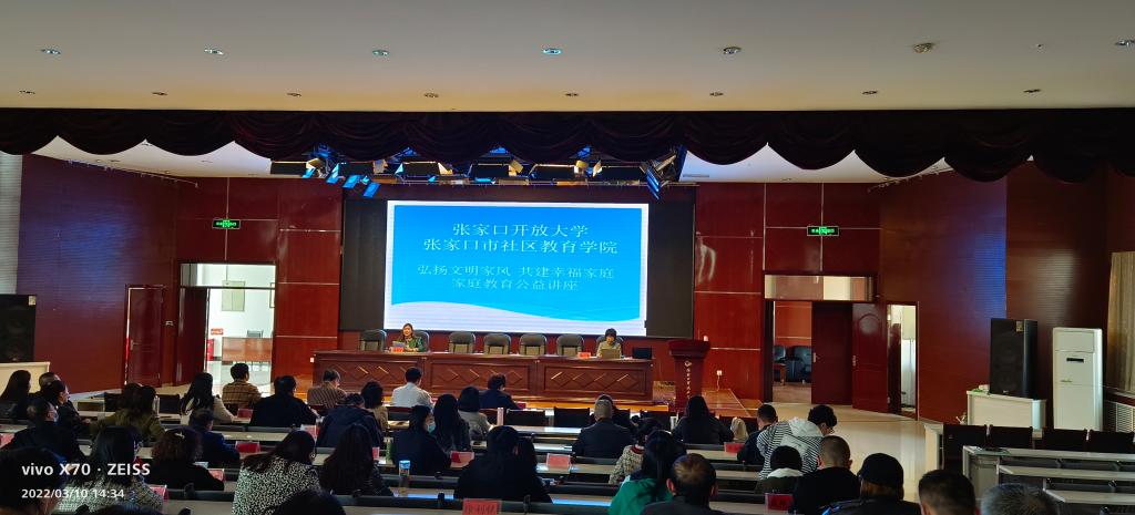 為貫徹習(xí)近平總書記關(guān)于注重家庭、注重家教、注重家風(fēng)的重要論述,落實(shí)《中華人民共和國家庭教育促進(jìn)法》,弘揚(yáng)中華民族重視家庭教育的優(yōu)良傳統(tǒng),引導(dǎo)全體教職工注重家庭、家教、家風(fēng),增進(jìn)家庭幸福與社會(huì)和諧,3月10日下午,張家口開放大學(xué)(張家口市社區(qū)教育學(xué)院)“傳承優(yōu)良家風(fēng) 構(gòu)建和諧家庭”家庭教育公益講堂開講啦。參加本次活動(dòng)的有張家口開放大學(xué)校長張宏文、副校長黃永亮、張麗桃、紀(jì)委書記高海琴、副校長陳瑞芬;懷來、宣化、懷安、蔚縣、赤城開放大學(xué)校長和社區(qū)教育工作相關(guān)老師以及張家口開放大學(xué)全體教職工。活動(dòng)由陳瑞芬副校長主持。