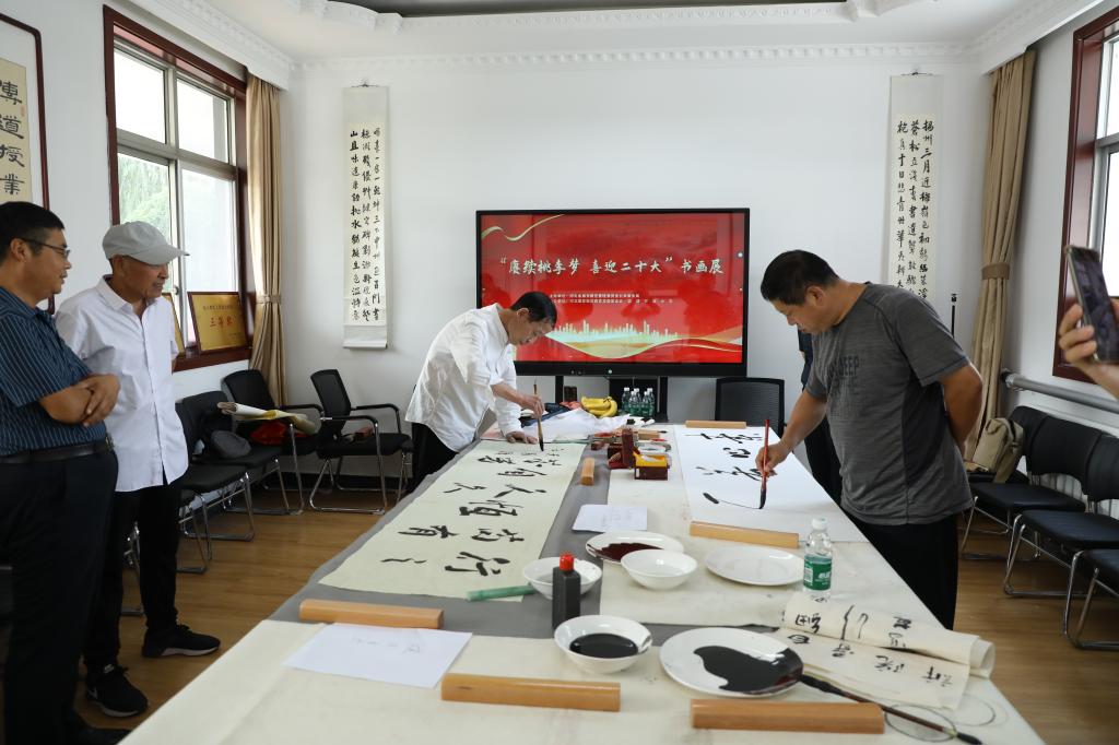 書畫展上,大家先后揮毫潑墨,激情創作,場面氣氛熱烈。