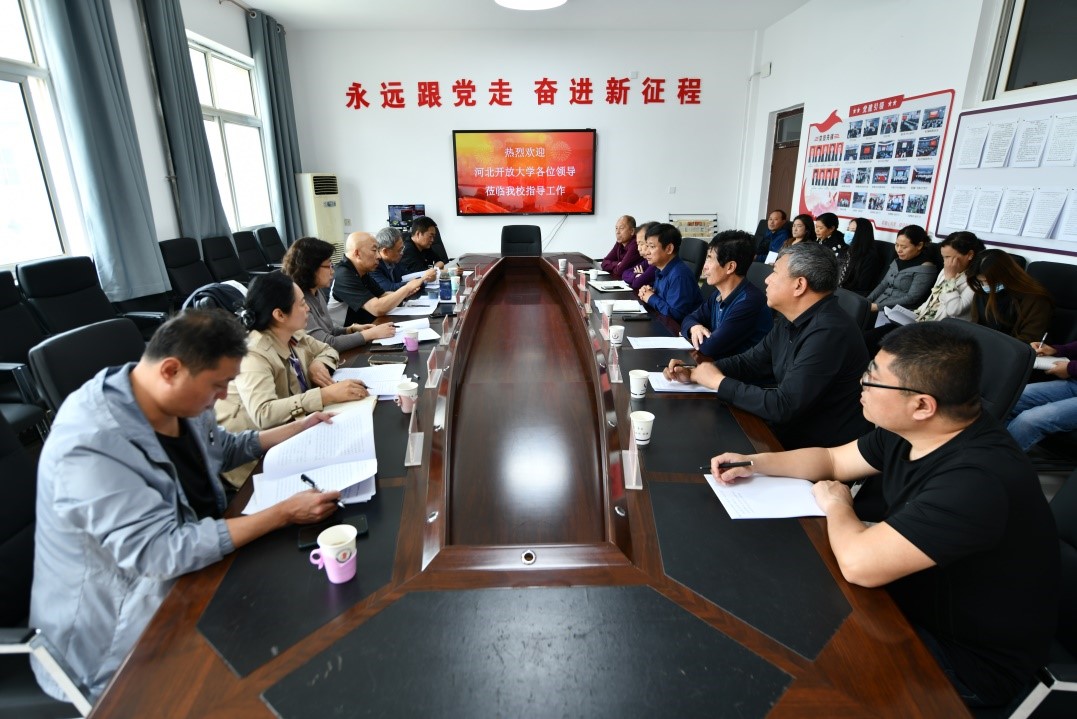 在兩校,調研組分別聽取了昌黎開放大學校長劉寶良、青龍開放大學校長何占仕的星評工作匯報,實地考察了校園環境、辦學條件、設施設備、校園文化等,并與管理人員及教師進行了座談交流。