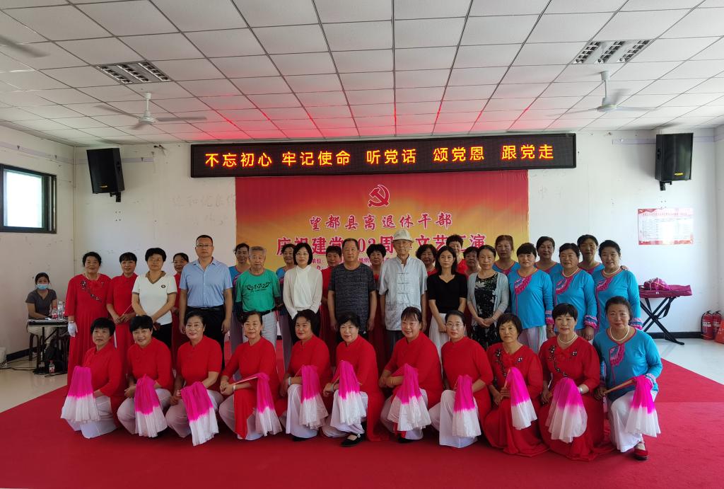 6月15日上午,由縣委組織部、縣委老干部局、縣老區發展促進會、縣文聯主辦,縣老年大學、縣開放大學、縣老干部活動中心協辦的望都縣離退休干部慶祝建黨102周年文藝匯演在縣老年大學舉行。縣委常委、組織部長、統戰部長李素,縣委組織部副部長、老干部局長朱亞偉,縣文聯主席于蘭茹,原人大主任趙銀增,原順平縣政協主席劉軍良,原政協副主席曹同柱出席演出。