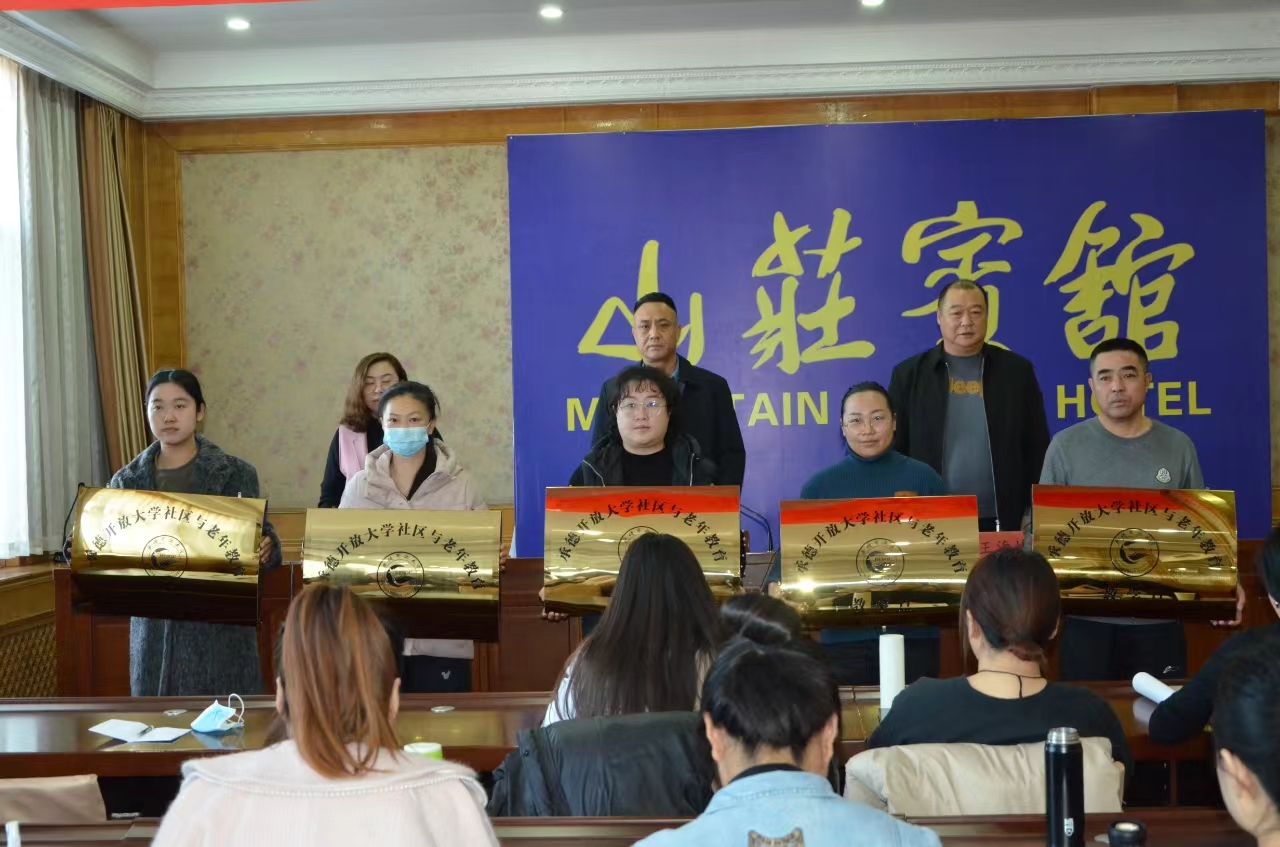 5號上午,舉行了社區與老年教育教學中心和教學點授牌儀式。蘇衛兵宣讀授牌決定,授予承德市雙橋區中華路街道辦事處承德社區與老年教育教學中心,授予新園社區等十三個社區為承德社區與老年教育教學點。同時社區與老年教育學院負責人傳達了《承德開放大學關于加快推進社區與老年教育體系建設工作的通知》,并對社區與老年教育系統建設和工作安排提出了有關要求。