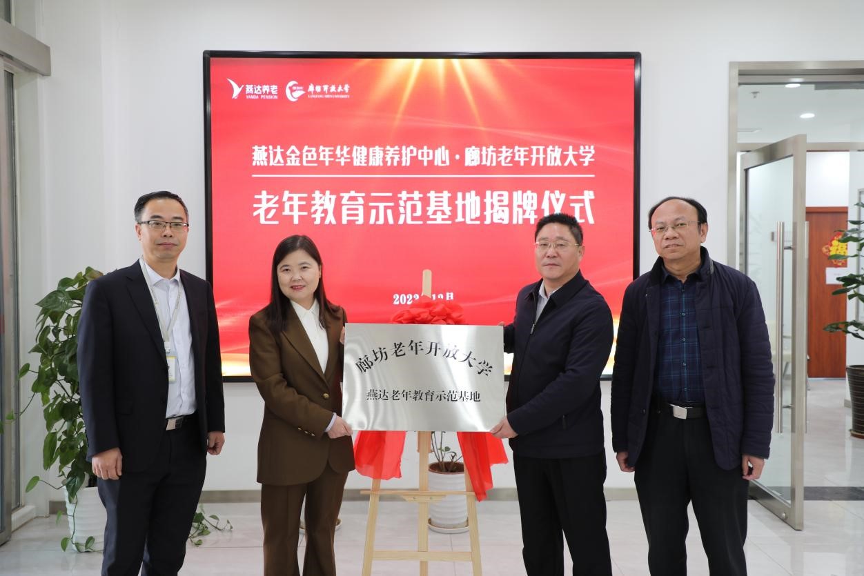 2023年12月18日上午,廊坊老年開放大學燕達老年教育示范基地舉行揭牌儀式。廊坊開放大學黨委書記段再友,黨委副書記、校長馬利國,黨委委員呂中戰;燕達集團副總裁李海燕,燕達集團健康養護中心常務副總經理崔凱等參加了揭牌儀式。